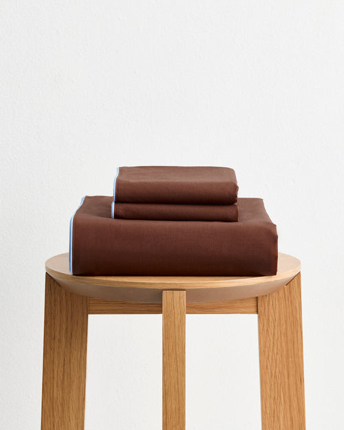 Espresso, Vanilla & Sky Piped 100% Organic Cotton Duvet Cover Set Piped Duvet Cover Set 100% Organic Cotton