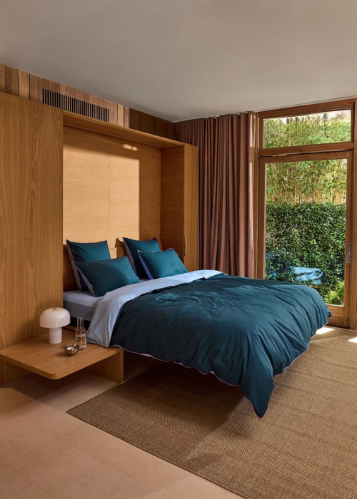 With structural bones that even the most stylish Parisian would drool over, the design team at Arent & Pyke had a very strong foundation on which to add their signature magic to. The word 'romance' is used to describe the apartment, with fluted archways and original French-style garland frieze that provide the spaces with a sense of grandeur and elegance that is unmatched in today's new builds. A light, graceful touch has been employed here, with careful thought given to preserving the heritage beauty of the penthouse and its design integrity. Gorgeous chevron floors line the apartment and help to ground the lofty home, with Persian rugs layered for comfort. The mixture of warm tones in these handmade heirlooms have been lifted and applied to the furnishings throughout—with twin quilted armchairs wrapped in fuschia velvet (almost) stealing the show from the leafy harbourside view beyond the archways.
