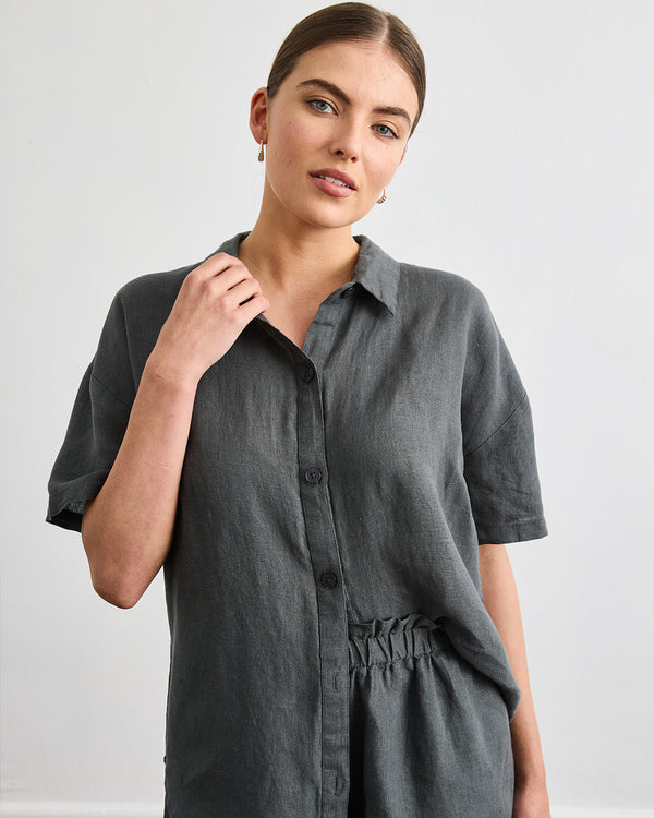 Marina Short Sleeve Shirt in Charcoal Marina Short Sleeve Shirt in Charcoal 100% French Flax Linen