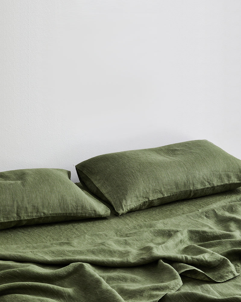 Olive Stripe Fitted Sheet 100% French Flax Linen