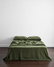 Olive Stripe 100% French Flax Linen Flat Sheet