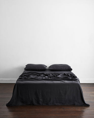 Charcoal 100% French Flax Linen Flat Sheet Charcoal Flat Sheet 100% French Flax Linen
