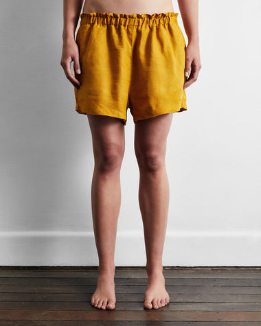 Turmeric 100% French Flax Linen Shorts Turmeric Shorts 100% French Flax Linen