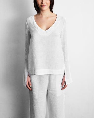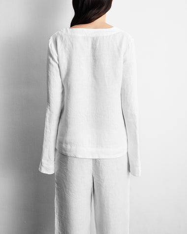 White 100% French Flax Linen Top White Top 100% French Flax Linen