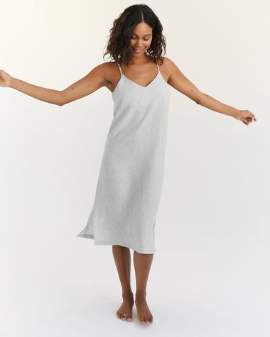 White 100% French Flax Linen Midi Dress White Midi Dress 100% French Flax Linen