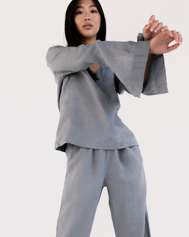 Charcoal 100% French Flax Linen Top Charcoal Top 100% French Flax Linen