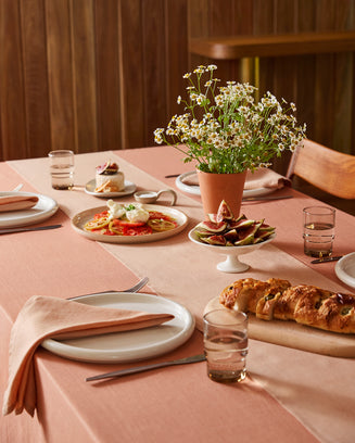 Our signature tableware collection now includes new linen colourways and our first Table Runner range, designed to mix and match.