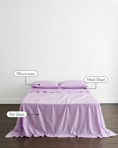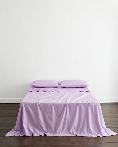 Awaken your senses with our organic cotton percale bedding in Violet, available as duvet covers, sheets and pillowcases.