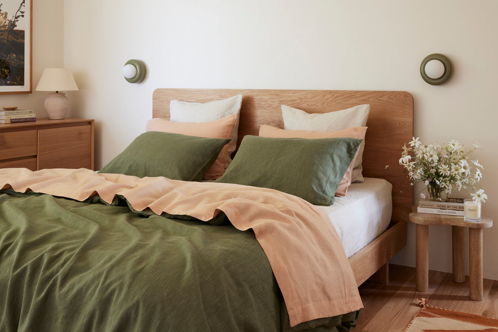 Olive Stripe, Terracotta & Oatmeal 100% French Flax Linen Bedding Bundle Olive Stripe, Terracotta & Oatmeal Bedding Bundle 100% French Flax Linen