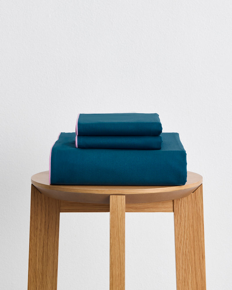 Aegean, Sky & Bubblegum Piped Duvet Cover Set 100% Organic Cotton