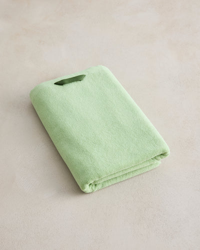 - Cotton Bath Towel packaged in a cotton storage sack.