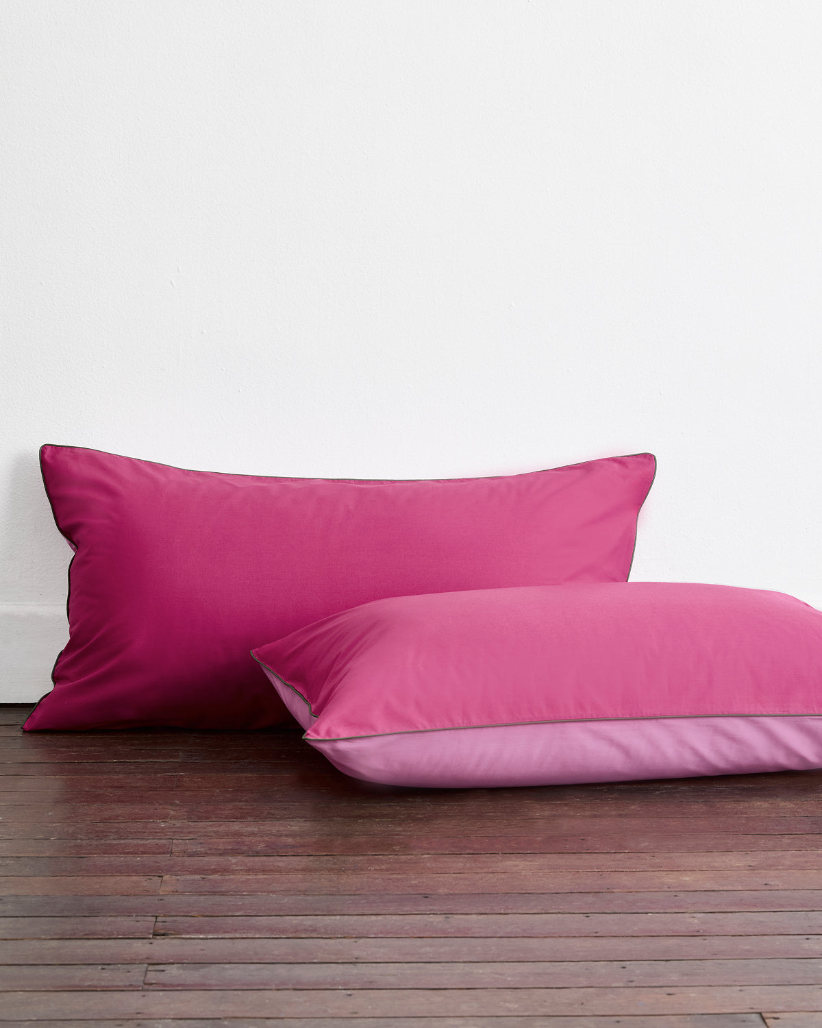 Berry, Bubblegum & Moss Piped King Pillowcases (Set of Two) 100% Organic Cotton