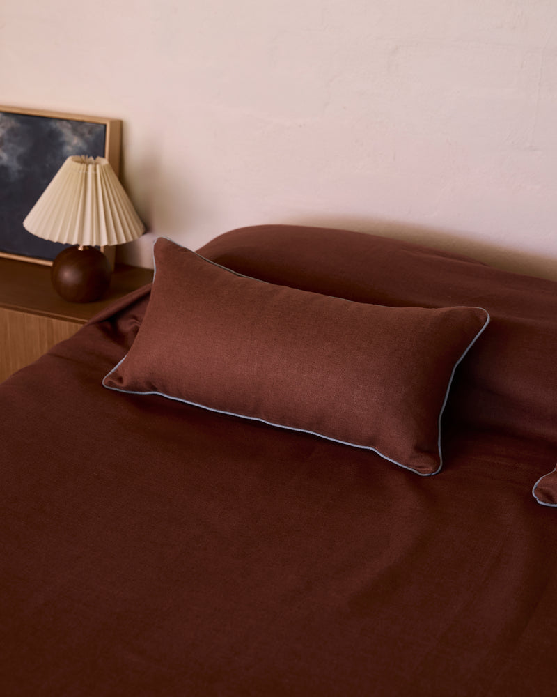 Cacao & Lagoon Piped Lumbar Cushion Cover 100% French Flax Linen