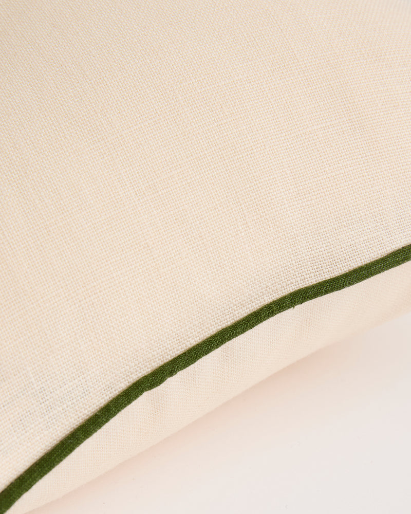 Crème & Olive Piped Cushion Cover 100% French Flax Linen