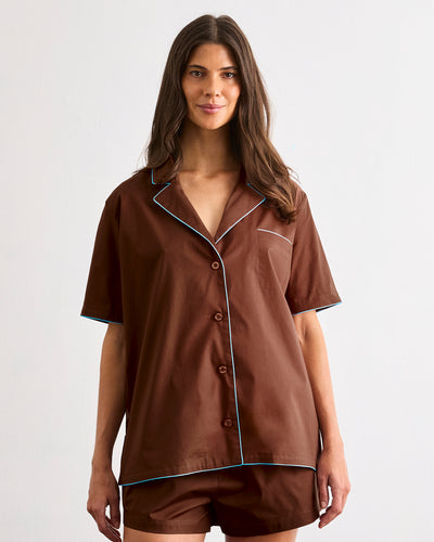 Espresso & Sky Piped Short Sleeve Shirt