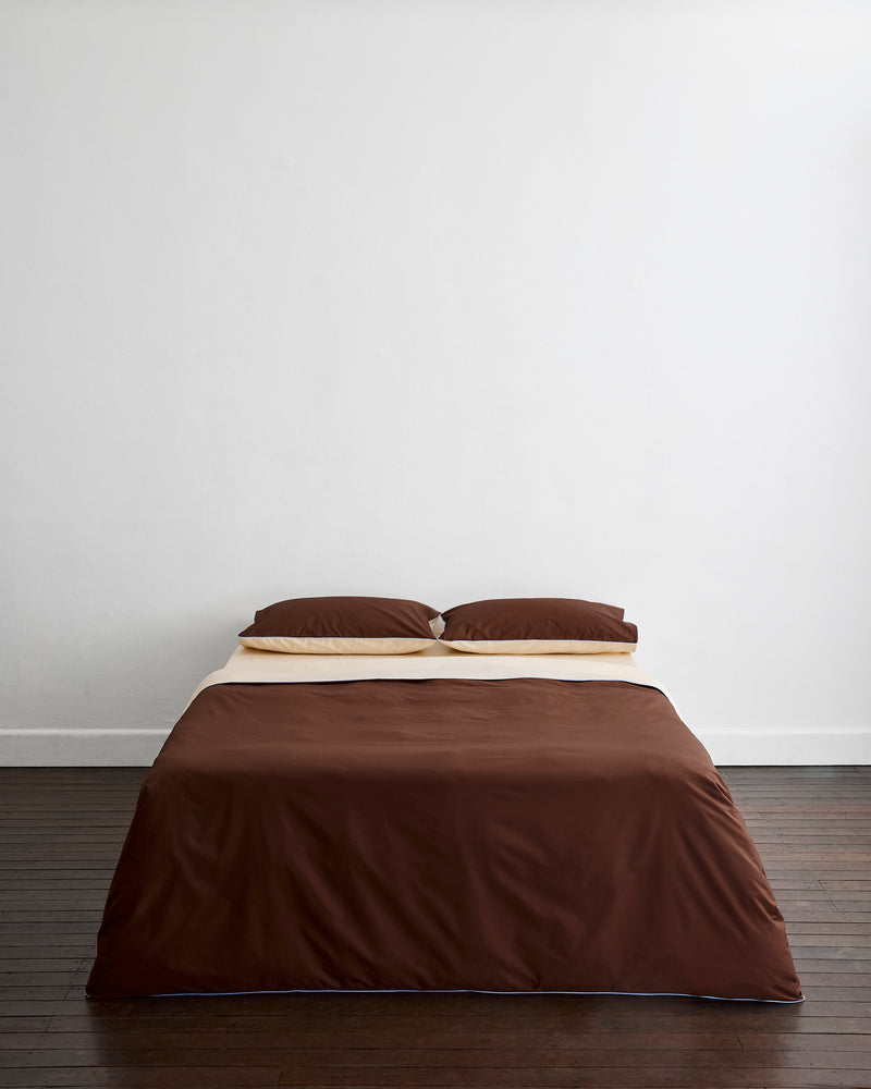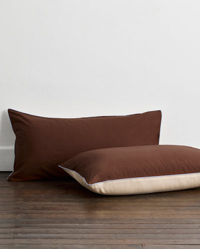 Espresso, Vanilla & Sky Piped King Pillowcases (Set of Two) 100% Organic Cotton
