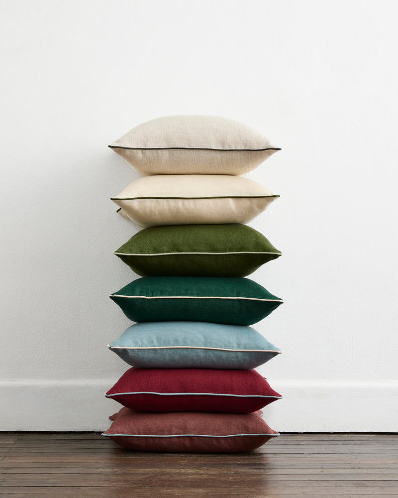 Lagoon & Crème Piped Cushion Cover 100% French Flax Linen