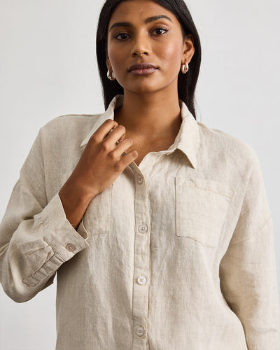 Lounge Long Sleeve Shirt in Oatmeal 100% French Flax Linen