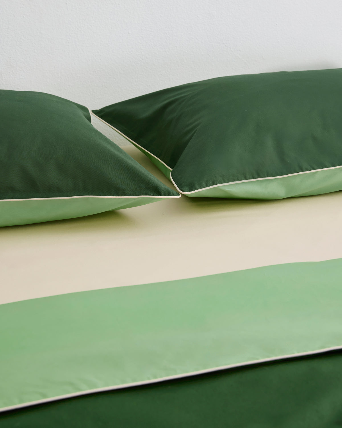 Moss, Apple & Vanilla Piped Pillowcases (Set of Two) 100% Organic Cotton