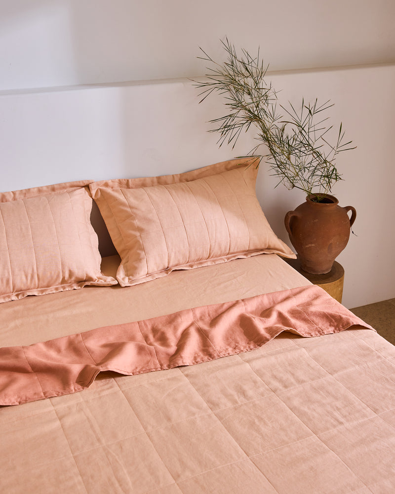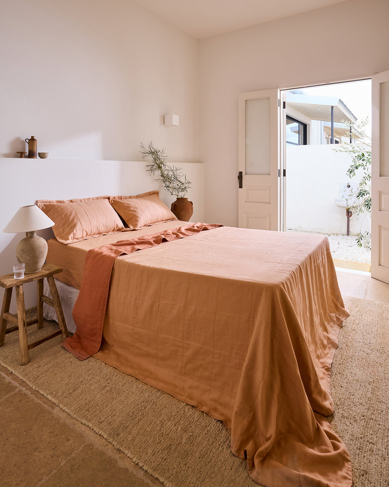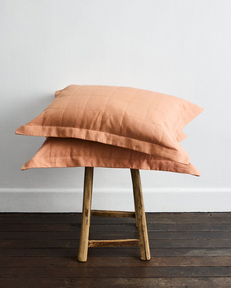 Terracotta Quilted Pillowcases (Set of Two) 100% French Flax Linen