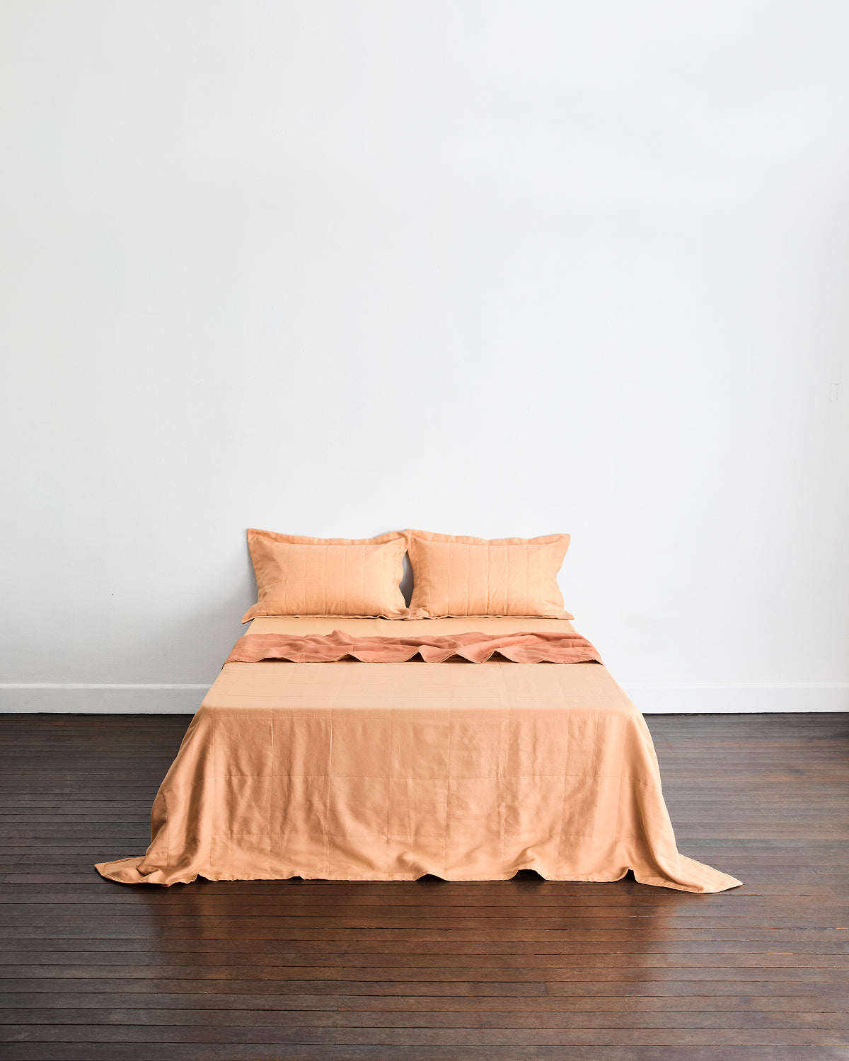 Terracotta & Hazelnut Two-Tone Quilt 100% French Flax Linen